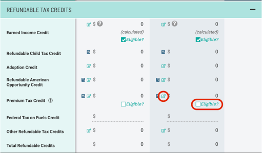 Open the Premium Tax Credit Worksheet by clicking the pencil icon circled above.