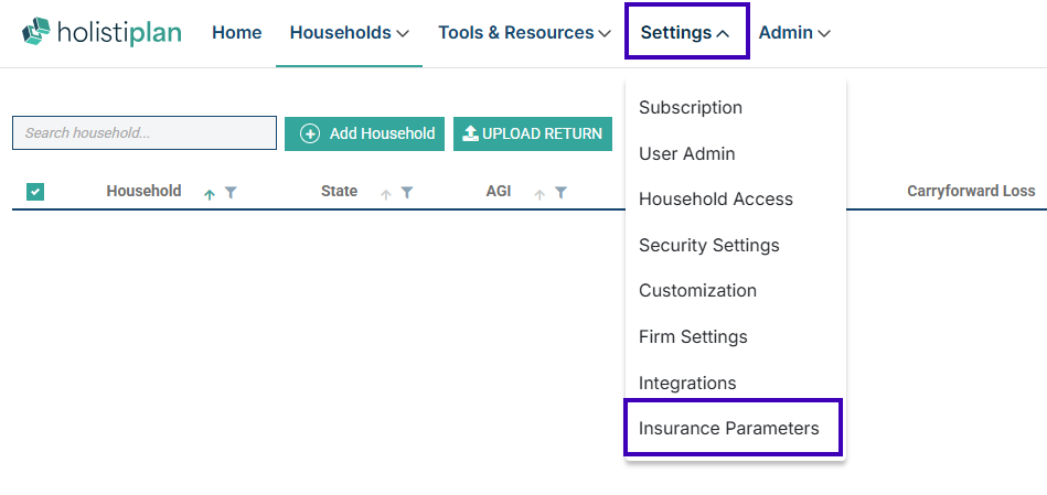 Once enabled, advisors in your firm will be able to access the insurance review tool within the client household screen.