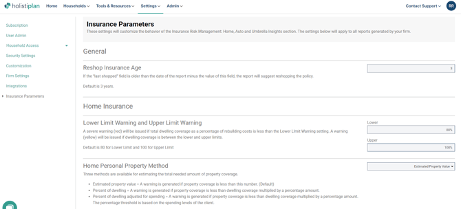 - Configure the thresholds and preferences that apply across your firm’s insurance evaluations.