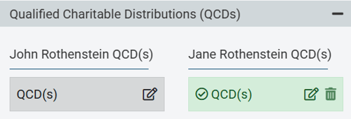 - Qualified Charitable Distributions (QCDs) - Enter any amount of QCDs a client may execute as a charitable giving strategy.