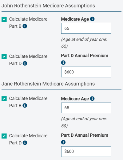 - Medicare Premiums and any IRMAA: If applicable and entered in the Medicare Assumptions.