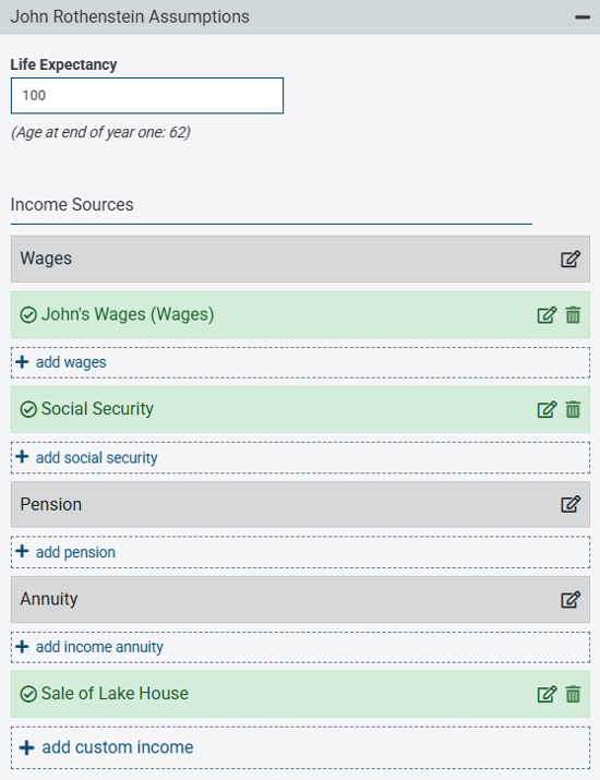 - Income Sources (including any Custom Income)