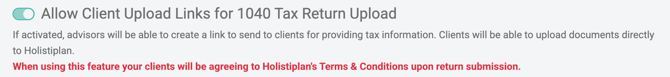 Note: Clients will be prompted to agree to Holistiplan's Terms and Conditions when they submit a return via the client upload links. You can find those Terms and Conditions here.