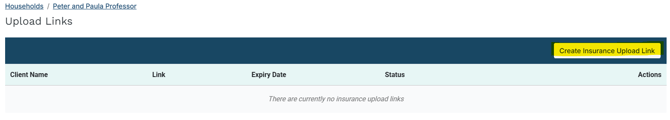 Once enabled, a Client Upload Link section will appear in the left panel of the household record.