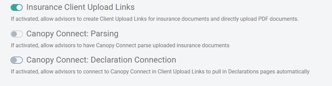 To enable the P&C Insurance Client Upload Link: