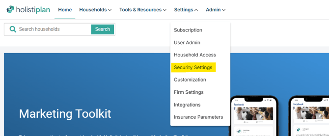 - Navigate to Settings → Security Settings