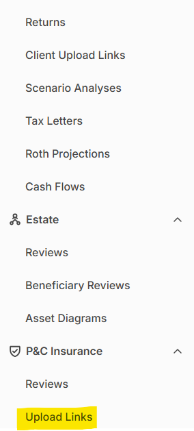 Client Upload Link for P&C Insurance