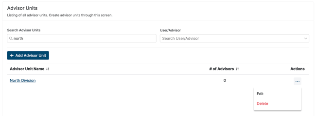 • Change the Advisor Unit name by clicking on the pencil icon in the Actions column.