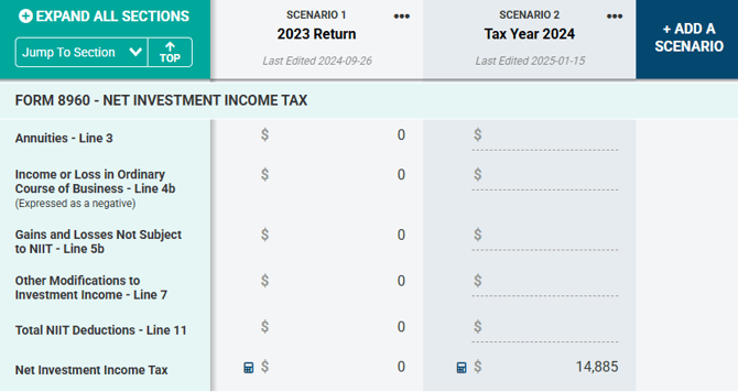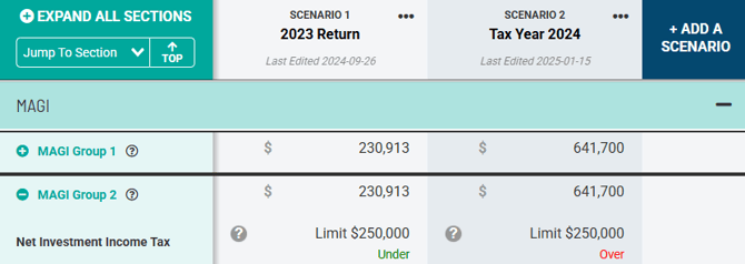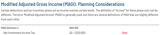 - NIIT is highlighted with it's own section on the Tax Report, within the MAGI Tiers section of the Tax Report, in the Other Taxes and MAGI sections of Scenario Analysis, and within our Range Calc tool, as seen in those examples below.