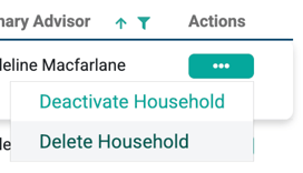 Click the ellipses under Actions in the row associated with the desired household and select Delete Household.