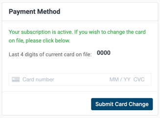 Card number can be reivewed and changed in the Payment Method Section