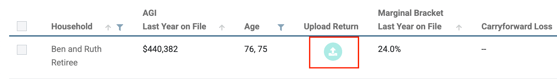 - Also on the Households page, click on the upload icon to the right of the client in question.