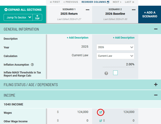 - In Scenario Analysis, go to the Wages section.