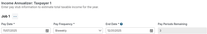 - End Date will automatically default to 12/31 of the current year. If the client anticipates the job will end earlier—due to an expected job change or retirement—enter the anticipated end date instead.