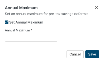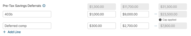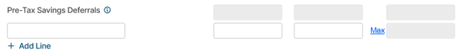 - For applicable categories (e.g., Pre Tax Savings Deferrals), click “Max” to set a maximum annual limit to avoid projecting amounts that exceed legal limits.