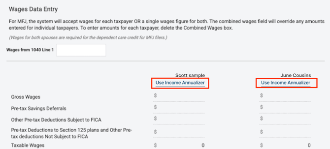 - Click Use Income Annualizer to open the income annualization worksheet.