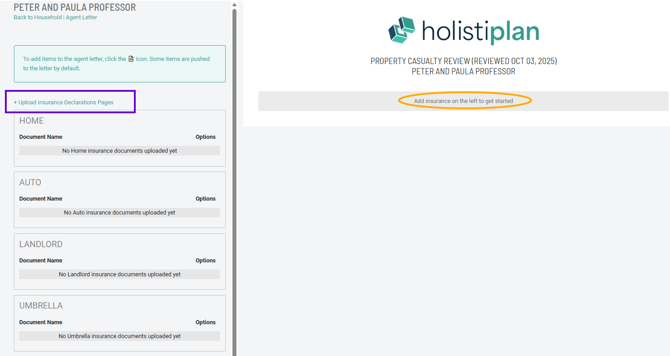 You will then be directed to your newly created Insurance Review to begin uploading insurance policy declarations to build out your Insurance Review.