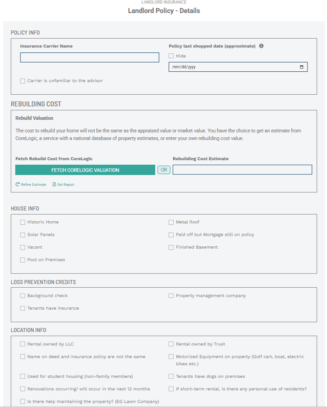 Landlord Policy Details:
