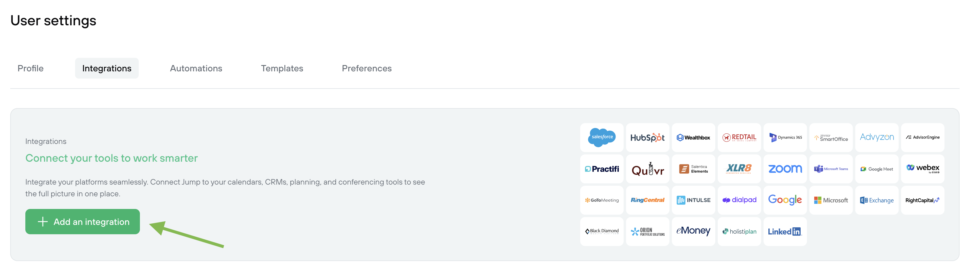 Important: A Holistiplan firm admin must enable the Jump integration before individual users can connect.