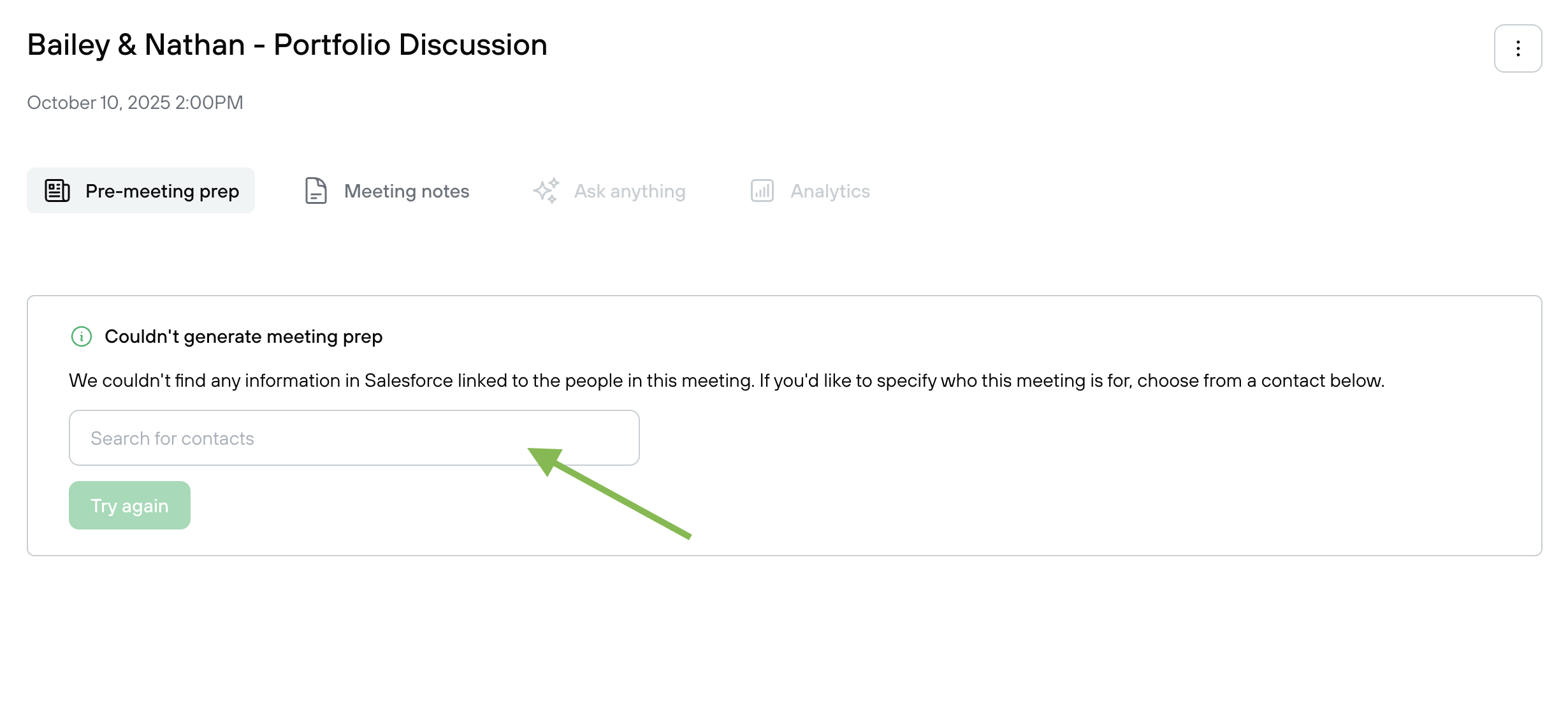 For Holistiplan data to appear in Pre-Meeting Prep: