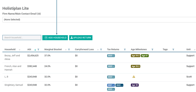 Please note that any user designated as a Firm Admin will be able to see any private households created for your firm's Holistiplan account.