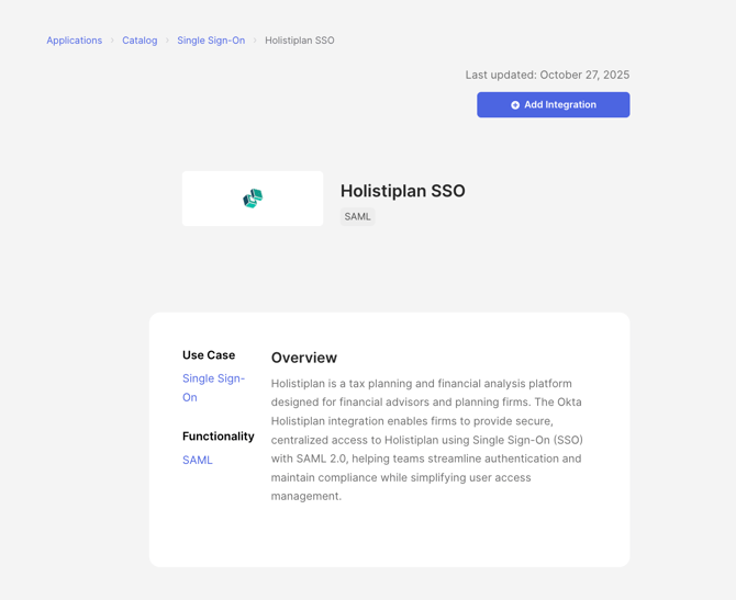 This article will run you through how to set up SSO between Okta and Holistiplan