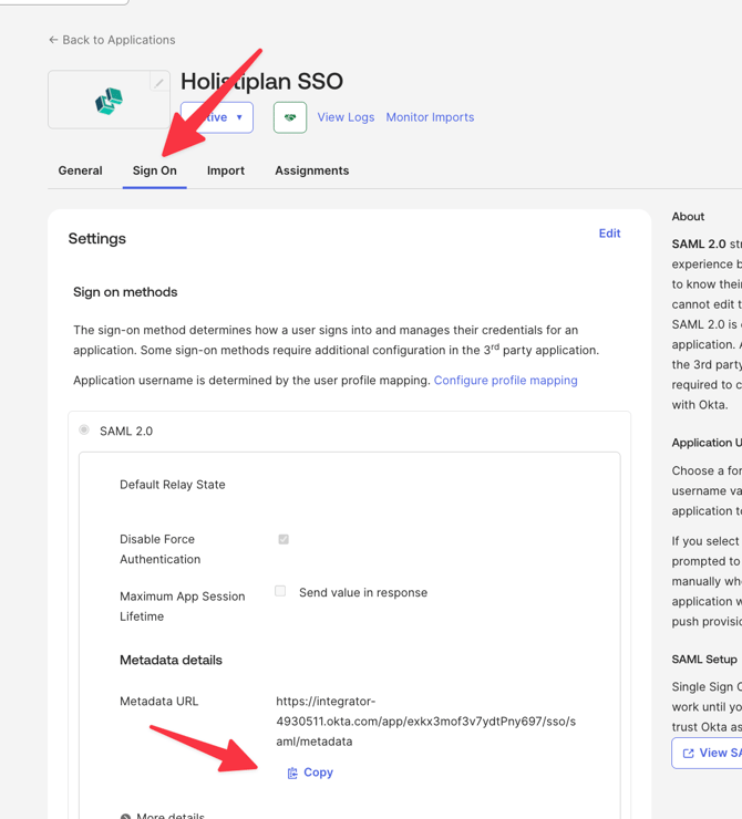 Go to the Single Sign-On tab, then copy the Metadata URL and download the metadata as an XML file.