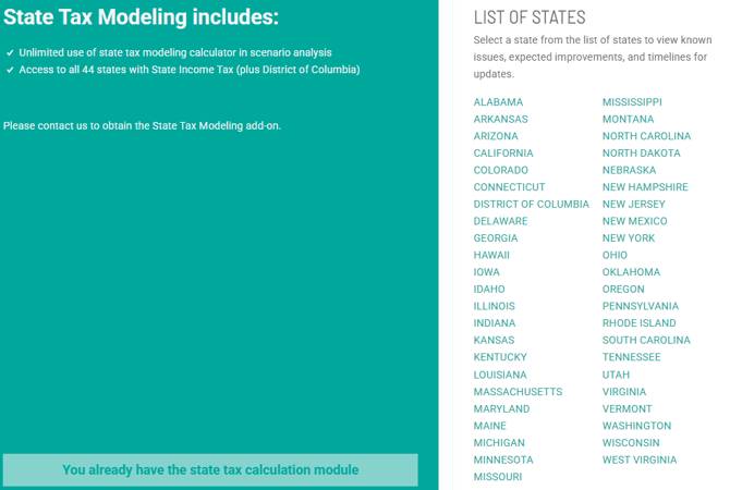 Note: We have no immediate plans to read in state tax returns via the OCR (Optical Character Recognition) technology we have employed to read in federal returns. This means that all state tax modeling must be done within Scenario Analysis.