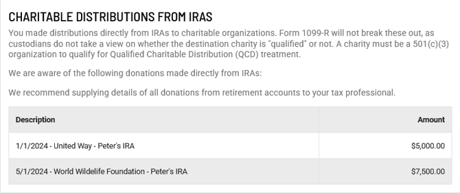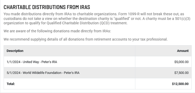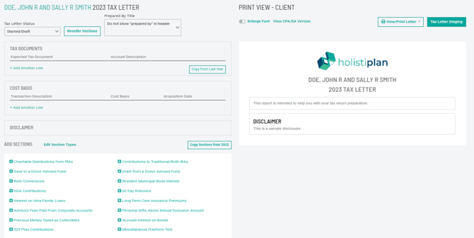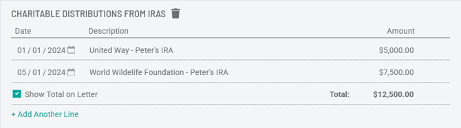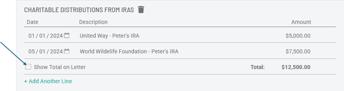 Within a section, Holistiplan will automatically total the amounts noted on each row and report that total on the Tax Letter: