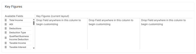 If the screen is blank, the Tax Report will display Holistiplan's default Key Figures. Upon customizing the Key Figures section, the Tax Report will only display those specific fields added to the Key Figures (Current Layout) section.