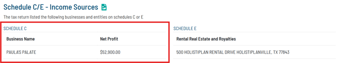 Tax Report: Schedule C/E Income Sources (Self-Employment Income and Supplemental Income)