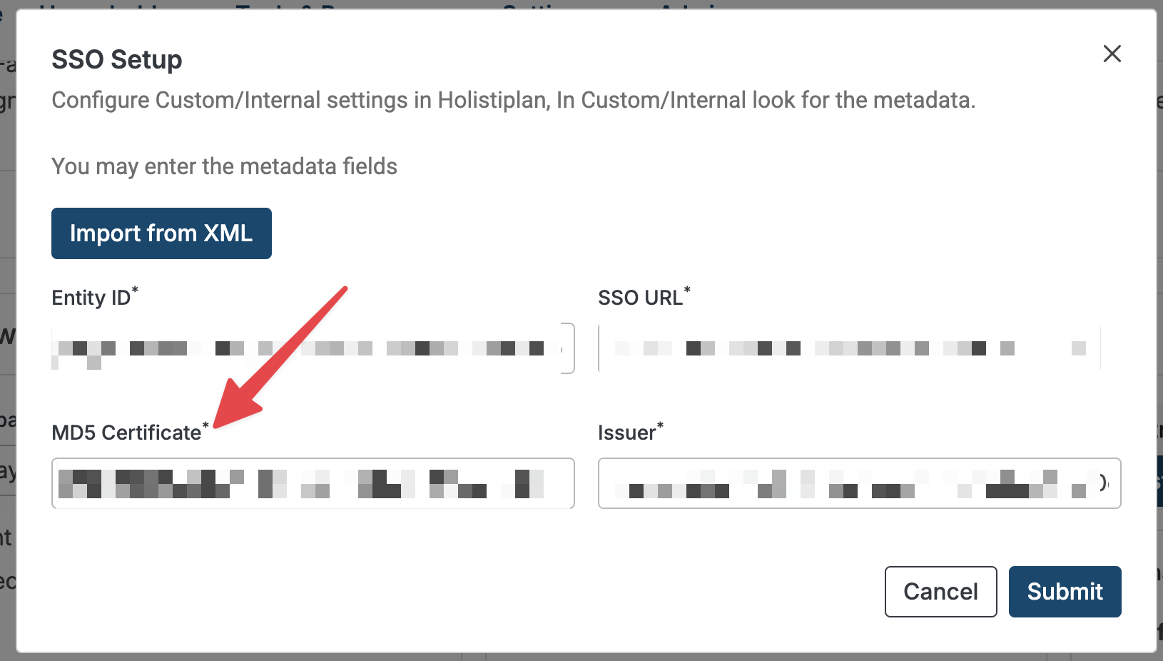 Only firm admins in Holistiplan have access to edit SSO settings and update the certificate.