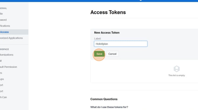 Click on the "Label" field, name your new token (e.g. Holistiplan), and click "Save." The new token will create a unique key that will be used to communicate between Holistiplan and Wealthbox. Do not share this key with others, as it serves as a unique access point between your two unique user account logins with each software.