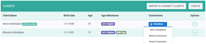 - Resync the Holistiplan/Wealthbox Connection to update client data.