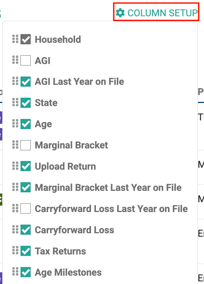 • Tax Returns (showing the the year of each return in the system for that household)